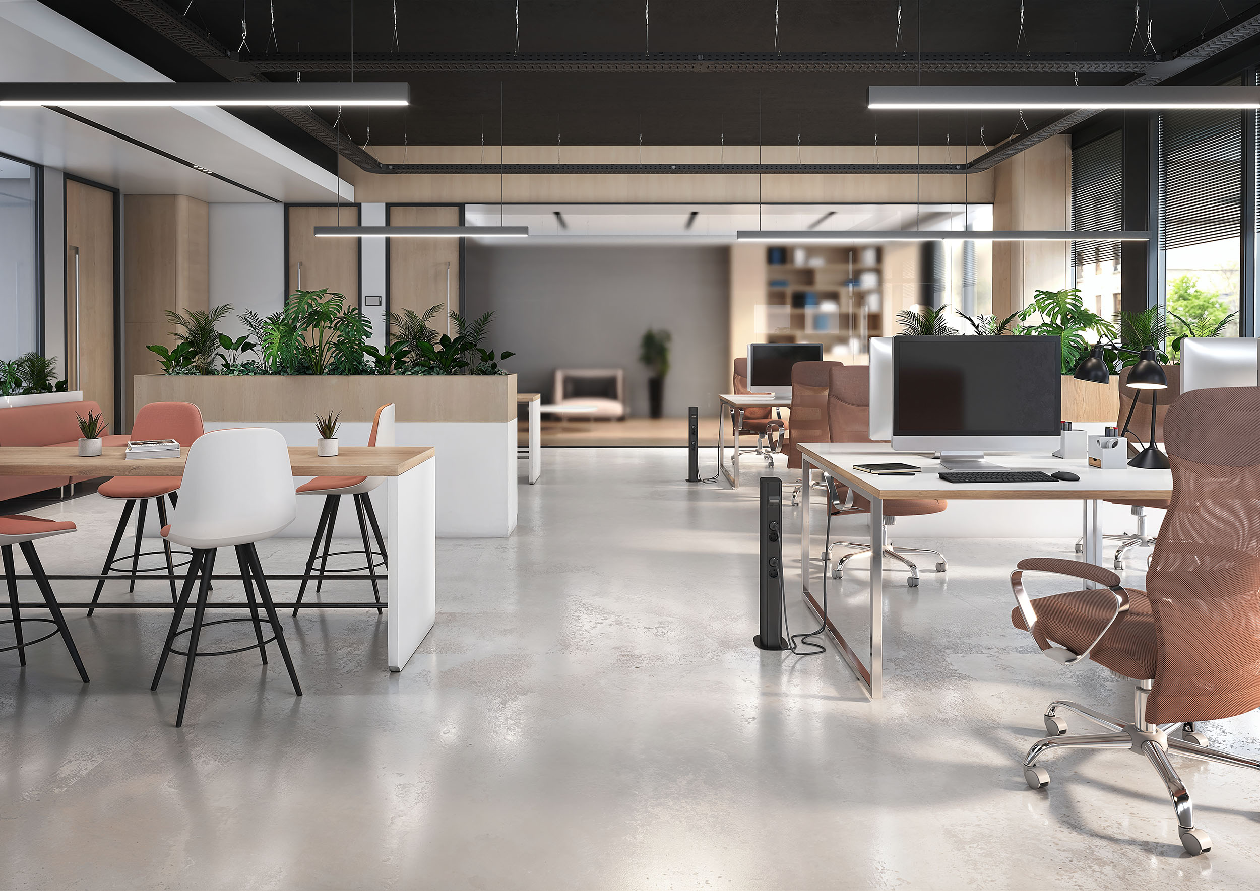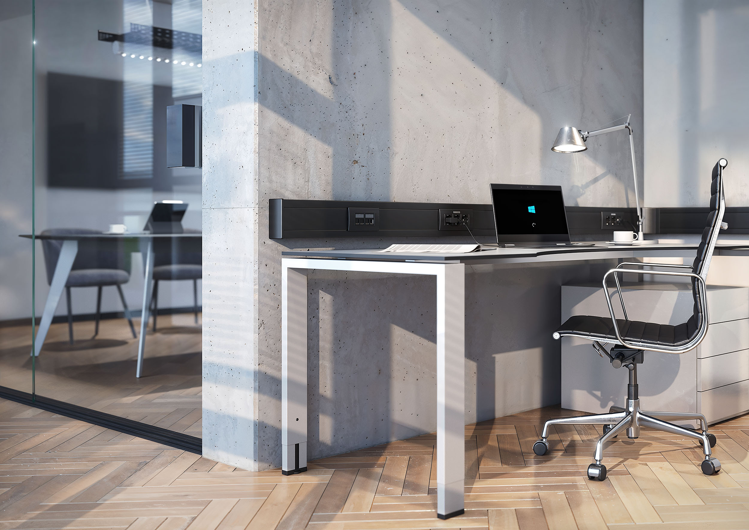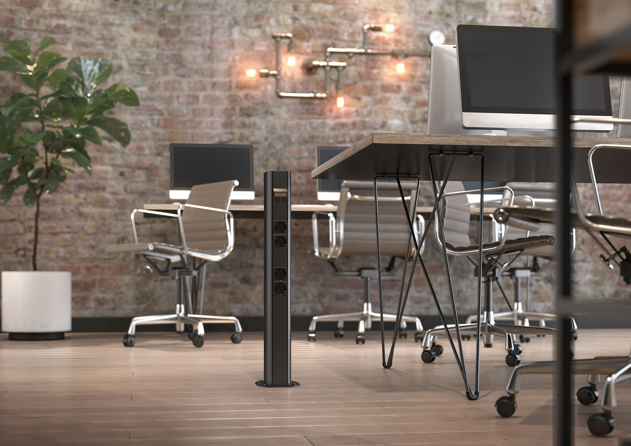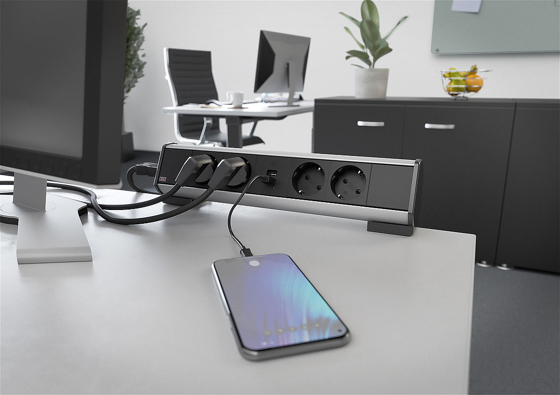 Deze premiumoplossingen ronden de zwarte stijl van stijlvolle interieurs harmonieus af. Ze leiden niet alleen kabels op designgerichte wijze door een ruimte, maar brengen ook stroom en data precies op de juiste plek. En wanneer dit midden in de ruimte ligt, kunnen op verzoek diverse zwarte energiezuilen zorgen voor een even stijlvolle als flexibele energievoorziening.