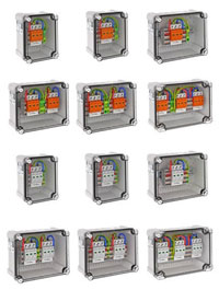 De stringboxen zijn verkrijgbaar in twee varianten: zowel met type 1+2 afleiders voor gebouwen met externe bliksembeveiliging als met type 2 afleiders voor gebouwen zonder externe bliksembeveiliging.