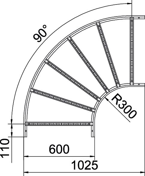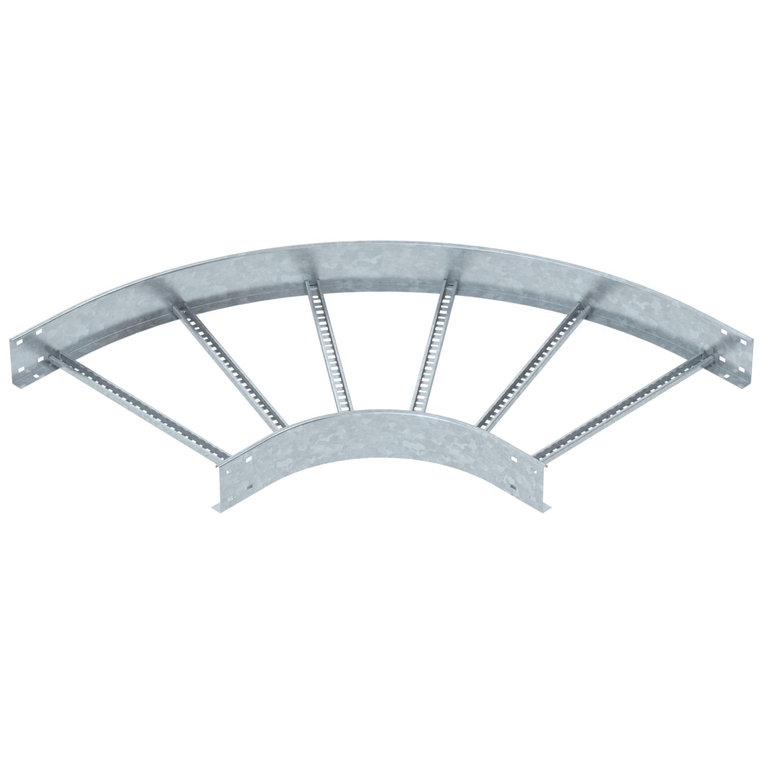 ProductbeschrijvingBocht 90°, horizontaal met gelaste sporten, voor alle types kabelladder met een zijhoogte van 110 mm.