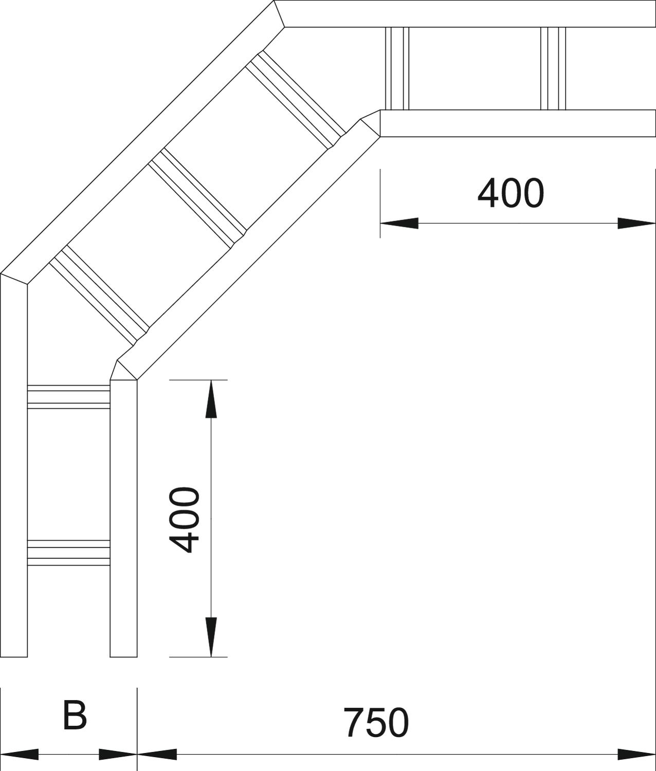 ProductbeschrijvingBocht 90°, horizontaal, voor alle verspankabelladders met een hoogte van 200 mm.