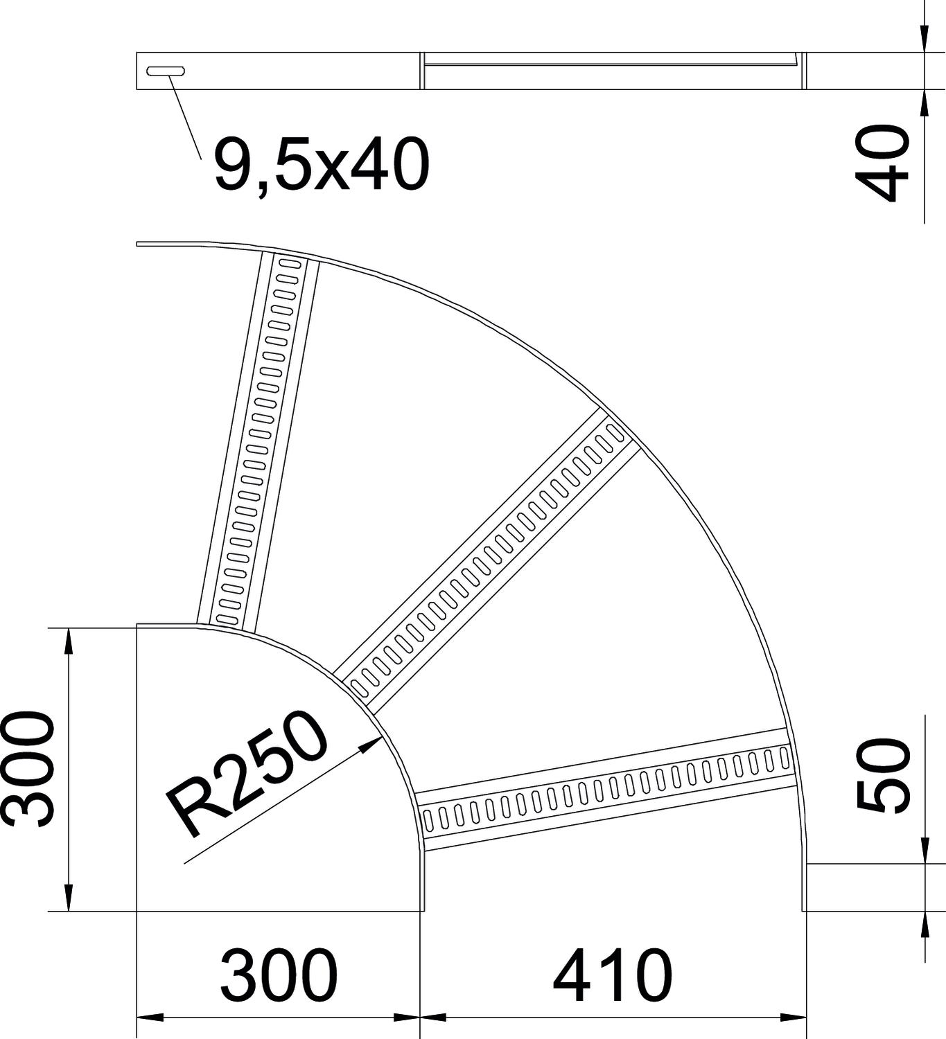 Productbeschrijving90° Bocht voor scheepsladder type SL 62 met zijhoogte 40 mm, met vastgelaste, geperforeerde, naar onder geopende, rechtvormige sporten.