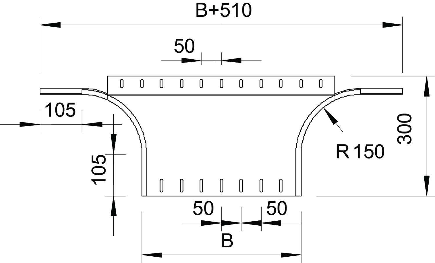 Hulpstuk in ronde uitvoering. De binnenstraal van het hulpstuk bedraagt 150 mm. Bevestigingsmateriaal moet afzonderlijk worden besteld.