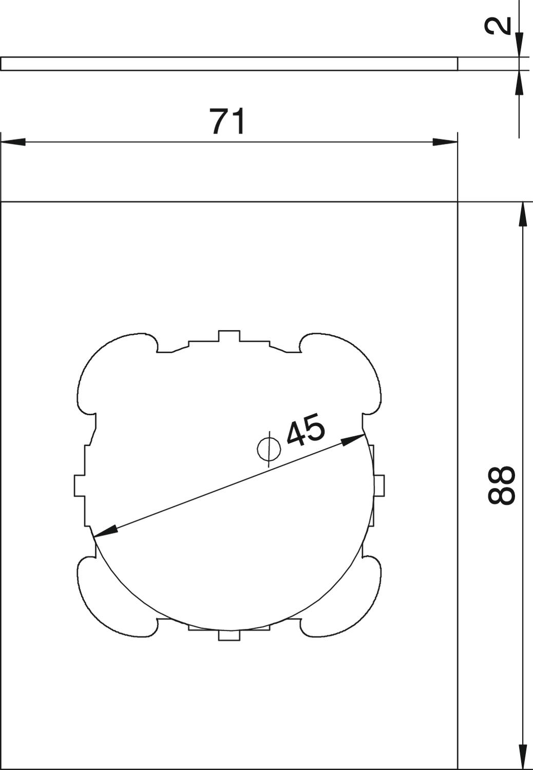 Aantal enkelvoudige openingen 1 Afdichtingsinbouwmogelijkheid nee Blinddeksel nee Breedte 71 mm CO2-voetafdruk (GWP) van wieg tot poort 0,0464 kg CO2e / 1 Stuk Dimensie 71x88mm Geschikt voor tekstveld nee Hoogte 2 mm Installatietechniek Draagbeugel Kleur grafietzwart, RAL 9011 Labelplaatje nee Lengte 88 mm Materiaal Polyvinylchloride Toepassing Opbouwtank Type bevestiging Schroefbaar - Alle typen