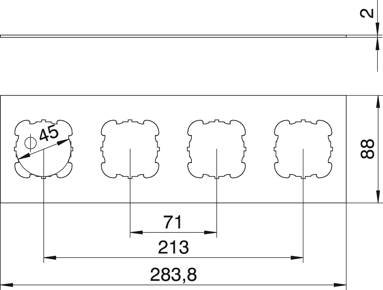 Aantal enkelvoudige openingen 4 Afdichtingsinbouwmogelijkheid nee Blinddeksel nee Breedte 284 mm CO2-voetafdruk (GWP) van wieg tot poort 0,1883 kg CO2e / 1 Stuk Dimensie 284x88mm Geschikt voor tekstveld nee Hoogte 2 mm Installatietechniek Draagbeugel Kleur grafietzwart, RAL 9011 Labelplaatje nee Lengte 88 mm Materiaal Polyvinylchloride Toepassing Opbouwtank Type bevestiging Schroefbaar - Alle typen