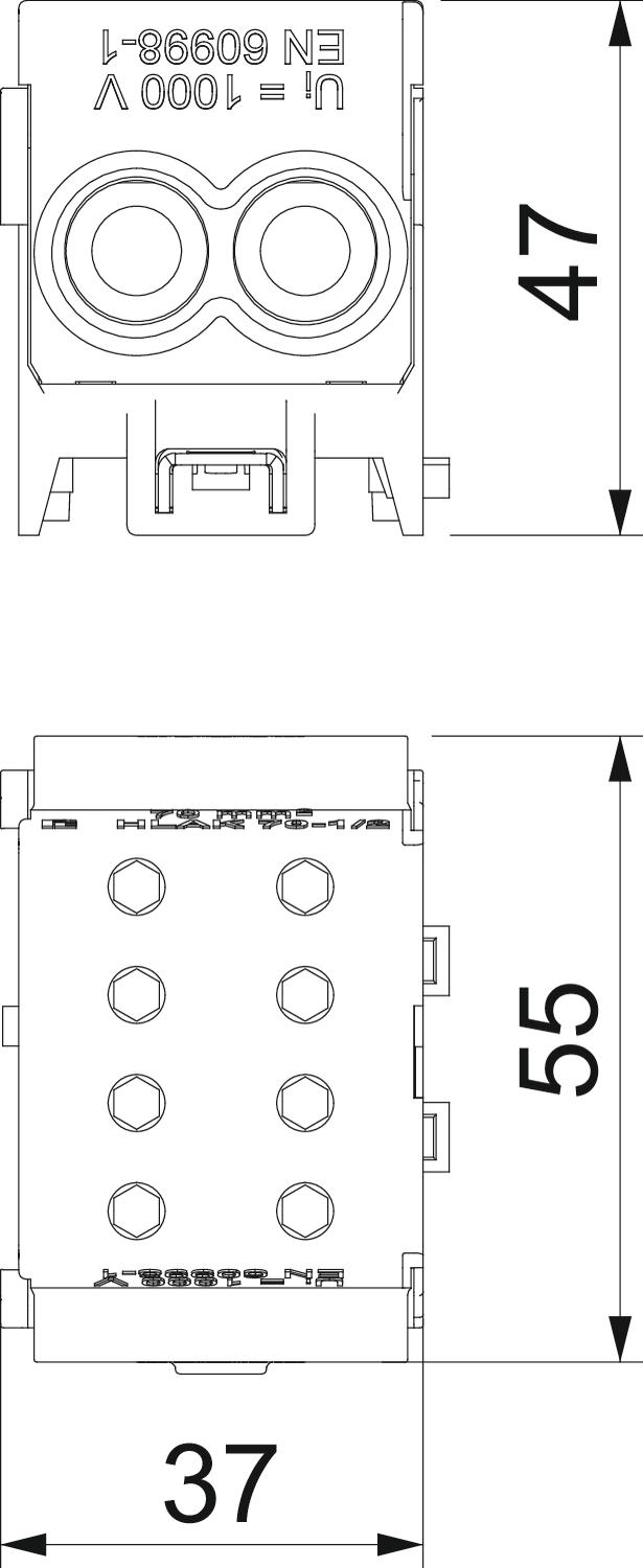 Productbeschrijving1-polige hoofdleidingsaftakklem 4 x 70 mm² aderaansluitingsdoorsneden per pool. Met 2 schroeven per klempunt voor een betrouwbare contactdruk. Uiterst bestendige snelbevestiging van verzinkt plaatstaal voor de eenvoudige montage op draagrails.