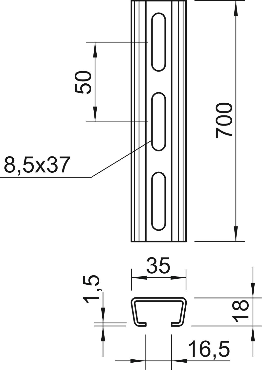 AML3518P0700FT 700 mm 35 mm 18 mm 1,5 mm Staal thermisch verzinkt 1119681