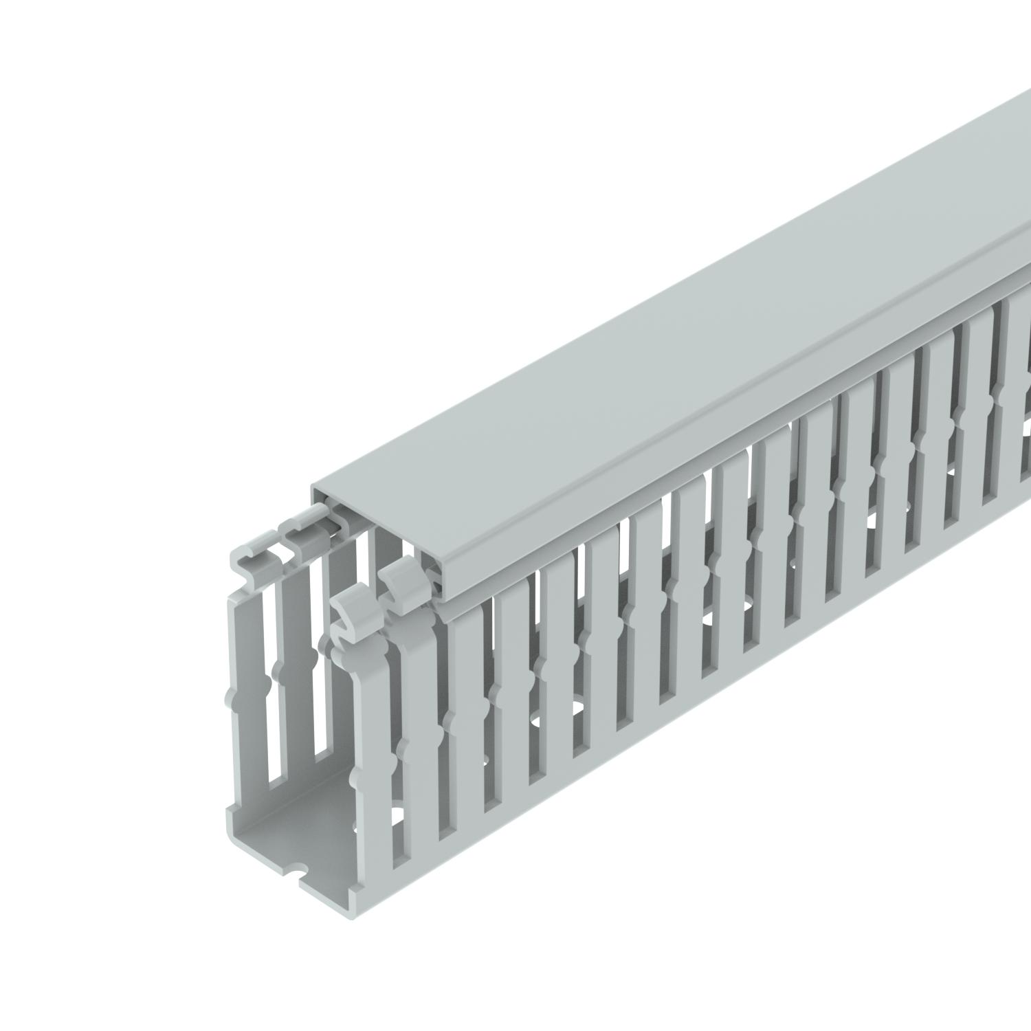 ProductbeschrijvingHalogen-free wiring duct according to DIN EN 50085-2-3, incl. cover and base perforation, for horizontal and vertical routing of electrical cables in the switchgear cabinet. Designed as a DIN duct. Retainers are broken out without tools. The flush-floor routing of cables is possible through predetermined break points. Tapering in the side slots prevents the cables from falling out. Tested to DIN EN 50085-2-3. Special lengths on request.