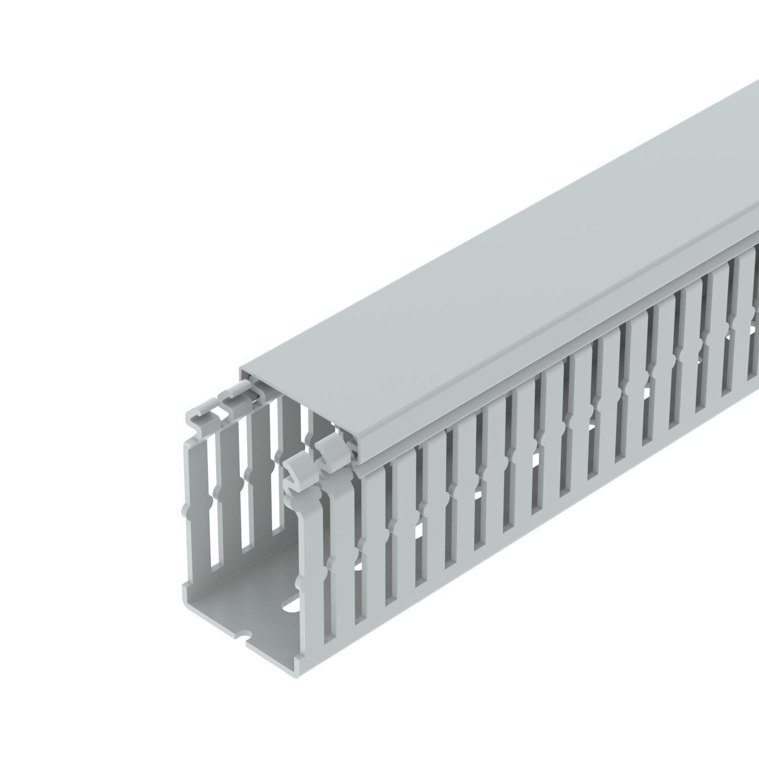 ProductbeschrijvingHalogen-free wiring duct according to DIN EN 50085-2-3, incl. cover and base perforation, for horizontal and vertical routing of electrical cables in the switchgear cabinet. Designed as a DIN duct. Retainers are broken out without tools. The flush-floor routing of cables is possible through predetermined break points. Tapering in the side slots prevents the cables from falling out. Tested to DIN EN 50085-2-3. Special lengths on request.