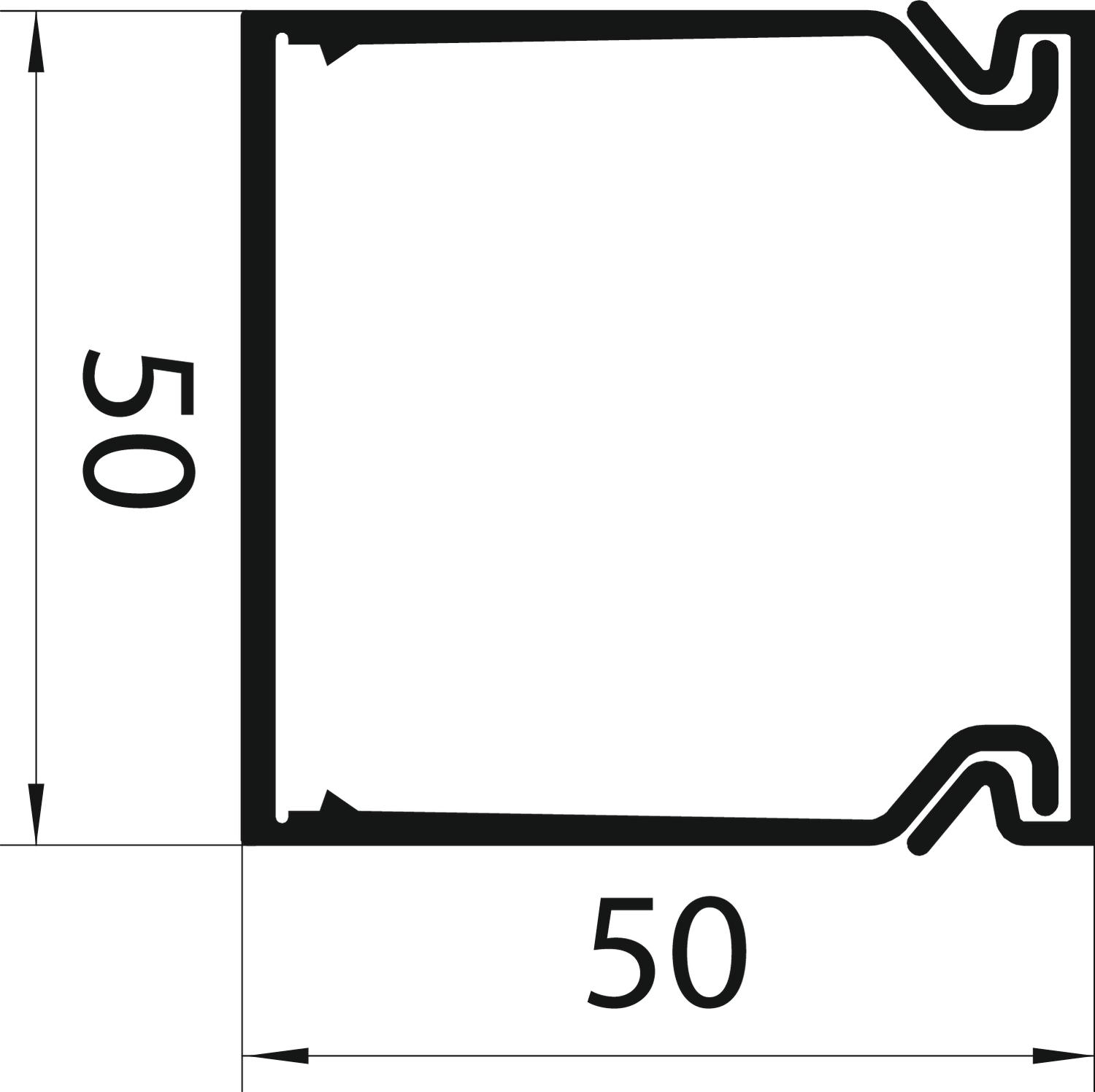 Breedte 50 mm Hoogte 50 mm Kleur lichtgrijs; RAL 7035 Lengte 2000 mm Materiaal Polycarbonaat/acrylnitriel-butadieen-styrol Nuttige doorsnede 19,04 cm² Temperatuurbereik max. 90 °C Temperatuurbereik min. -25 °C - Alle typen