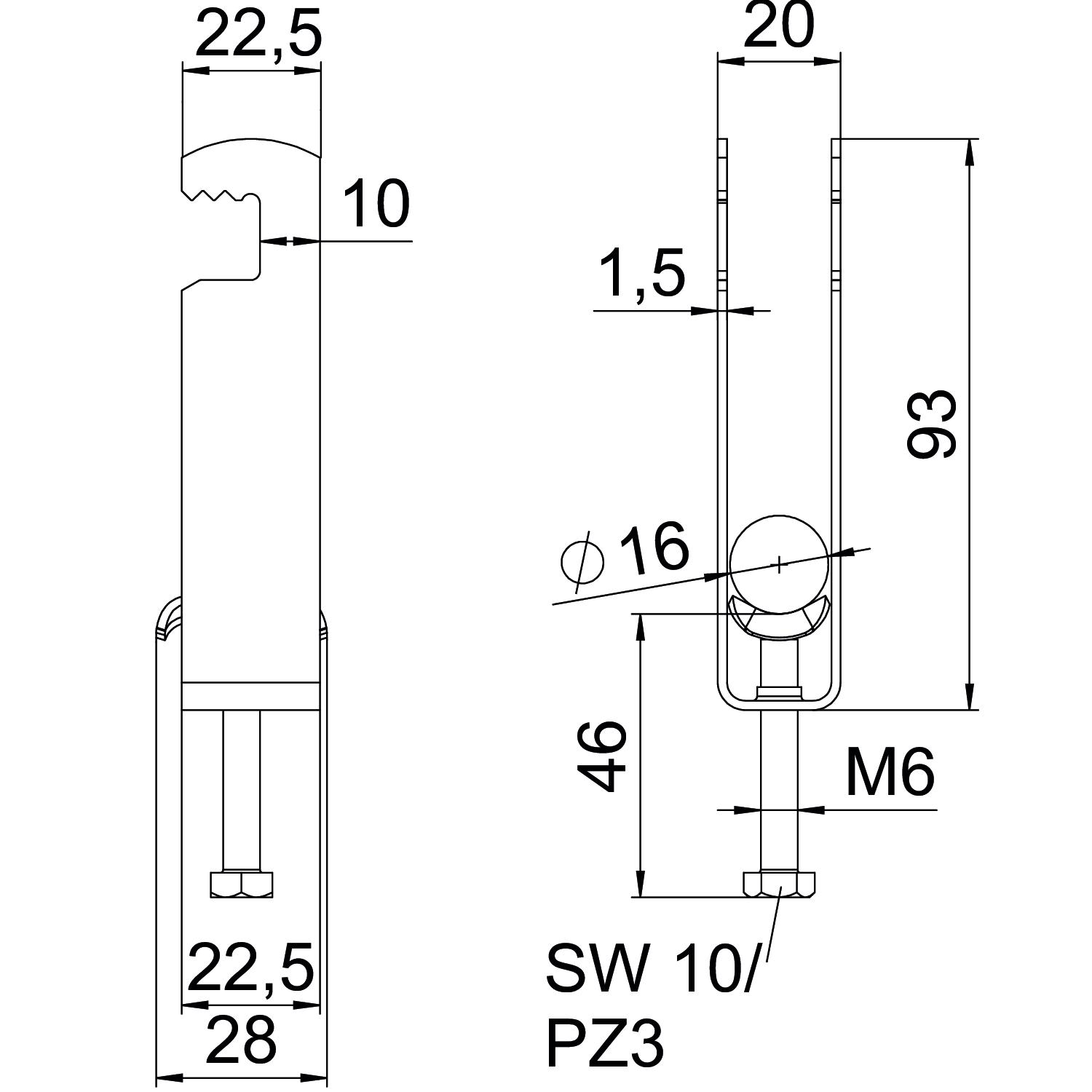 Aantal kabels/ buizen 3 Afm. H 93 mm Afmeting G (mm) M6 Breedte 20 mm CO2-voetafdruk (GWP) van wieg tot poort 0,1905 kg CO2e / 1 Stuk Dimensie 12-16mm Extra materiaal Staal Extra oppervlak vuurverzinkt Halogeenvrij ja Hoogte 93 mm Lengte 22,5 mm Lengte buitenmaat 28 mm Maat A 22,5 mm Maat B 20 mm Maat C 28 mm Maat L 46 mm Maat t 1,5 mm Materiaal Staal max. Aandraaimoment 3 Nm met metalen bak ja Montagetype Vlak profiel Oppervlak thermisch verzinkt Plaatdikte 1,5 mm Schroefdraad M6 Sleufbreedte 10 mm Spanbereik D max. 16 mm Spanbereik D min. 12 mm voor buisdiameter max. 16 mm voor buisdiameter min. 12 mm - Alle typen
