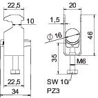 ProductbeschrijvingBeugelklem met hamerkopvoet, kunststof drukwand van polypropyleen. Voor verticale en horizontale montage van 1 afzonderlijke kabel aan C-profielrail. Voor sleufbreedte 16 - 17 mm. Met 1 schroef op drukwand, universele zeskantschroefkop SW10, met gleuf en kruiskop. Geschikt voor de montage binnen en buiten. Toepassing van de drukwand wordt geadviseerd.