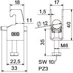 ProductbeschrijvingBeugelklem met F-voet, kunststof drukwand van polypropyleen. Voor verticale en horizontale montage van 1 afzonderlijke kabel aan C-profielrail. Voor sleufbreedte 18 - 22 mm. Met 1 schroef op drukwand, universele zeskantschroefkop SW10, met gleuf en kruiskop. Geschikt voor de montage binnen en buiten. Toepassing van de drukwand wordt geadviseerd.