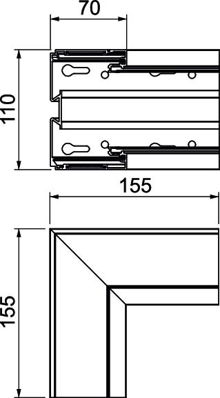 ProductbeschrijvingBinnenhoek als hulpstuk voor het veranderen van de richting van het Signa Style installatiekanaal.