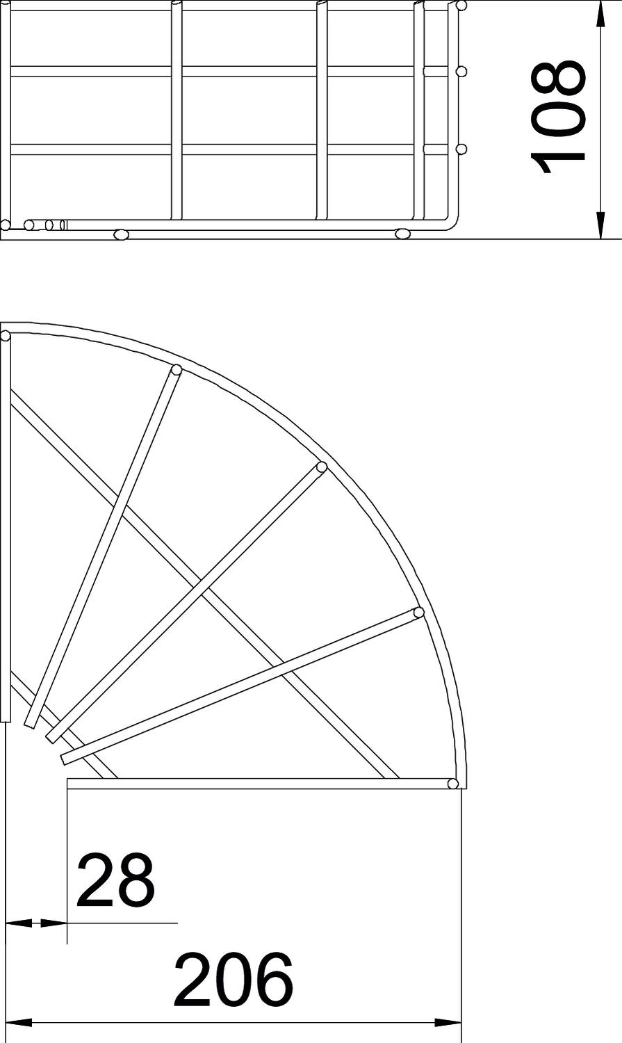 ProductbeschrijvingBocht 90°, horizontaal, voor draadgoten met een zijhoogte van 105 mm.