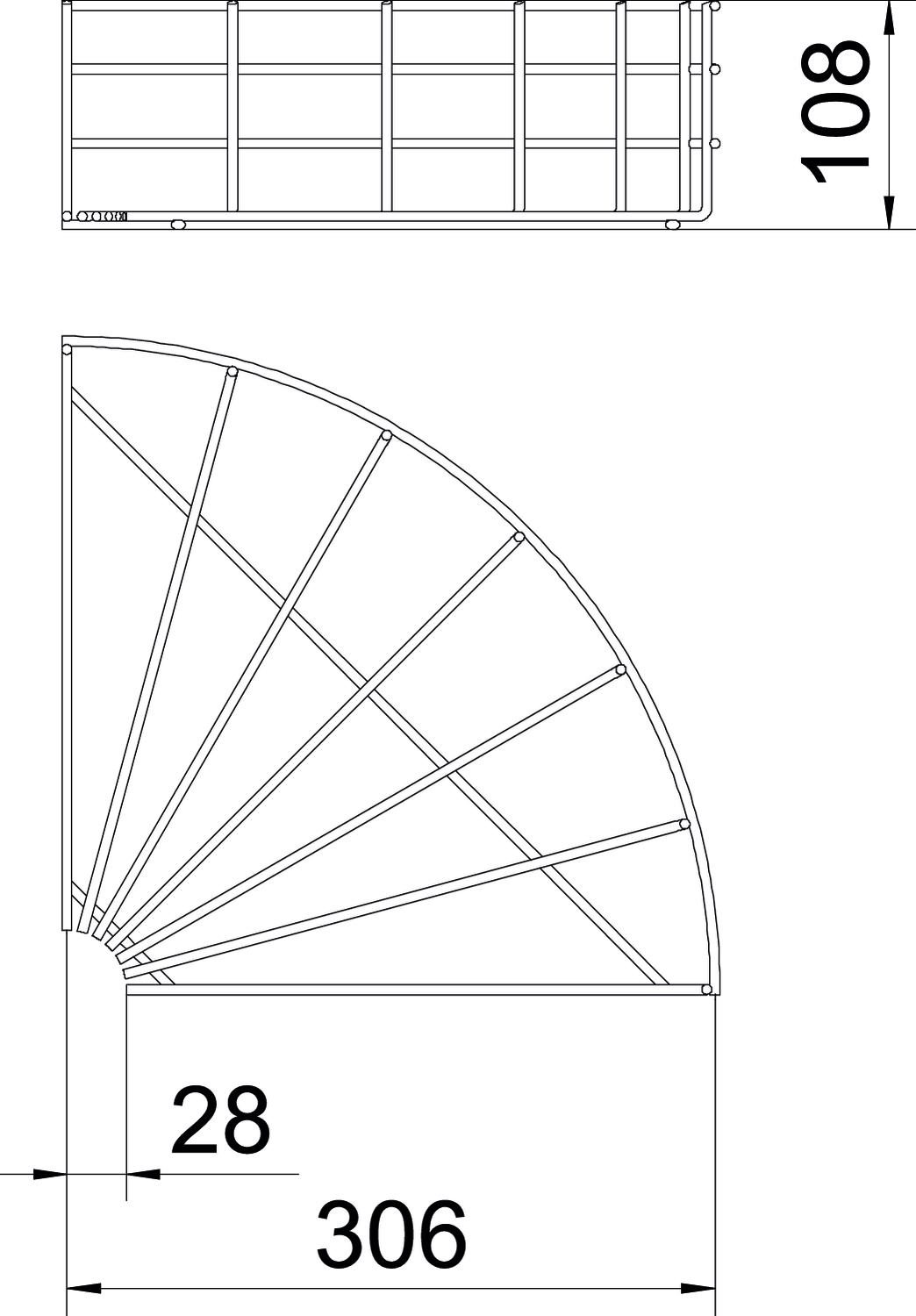 ProductbeschrijvingBocht 90°, horizontaal, voor draadgoten met een zijhoogte van 105 mm.