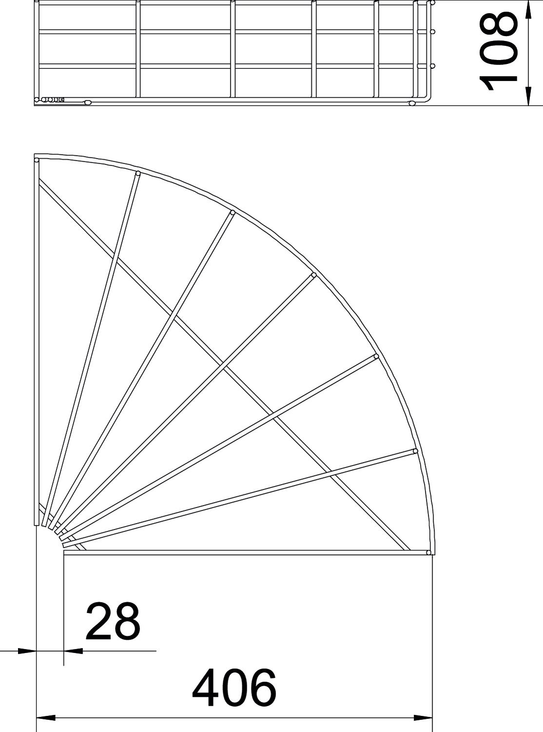 ProductbeschrijvingBocht 90°, horizontaal, voor draadgoten met een zijhoogte van 105 mm.