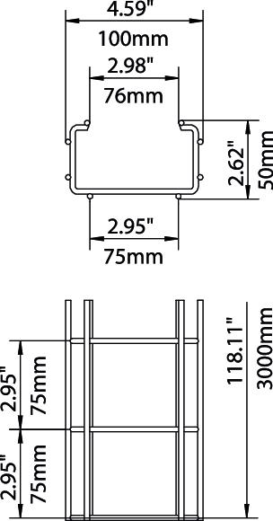 ProductbeschrijvingDraadgoot in C-vorm van gepuntlaste staaldraden met een zijhoogte van 50 mm.