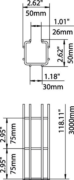 ProductbeschrijvingDraadgoot in C-vorm van gepuntlaste staaldraden met een hoogte van 50 mm.