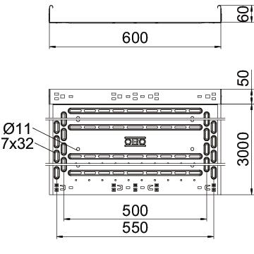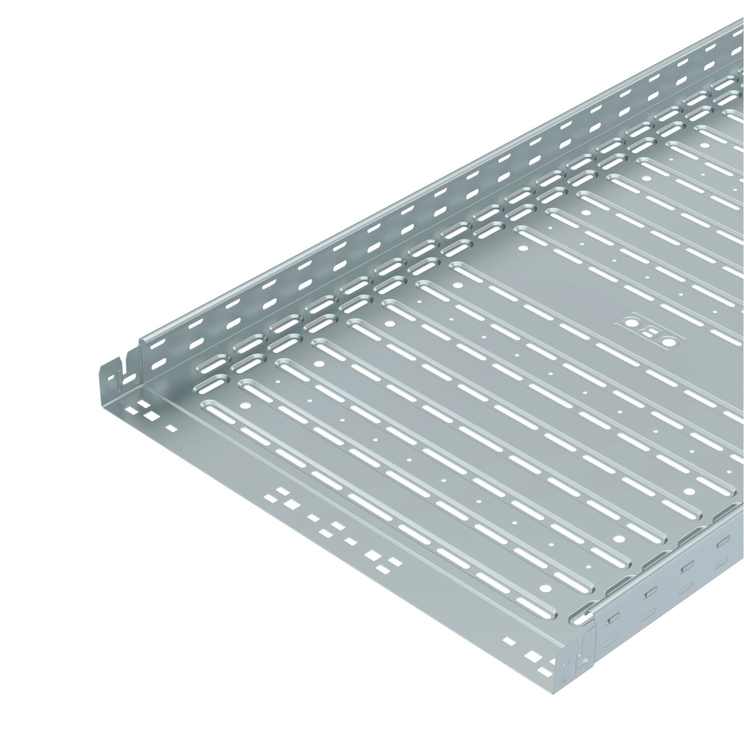 ProductbeschrijvingCable tray made from CO2-reduced steel, with integrated quick-fastening system. Usable length 3,000 mm. With continuous side perforation of 7 x 20 mm for the installation of connection and mounting components. 11 mm perforation in the base for direct threaded rod susptension