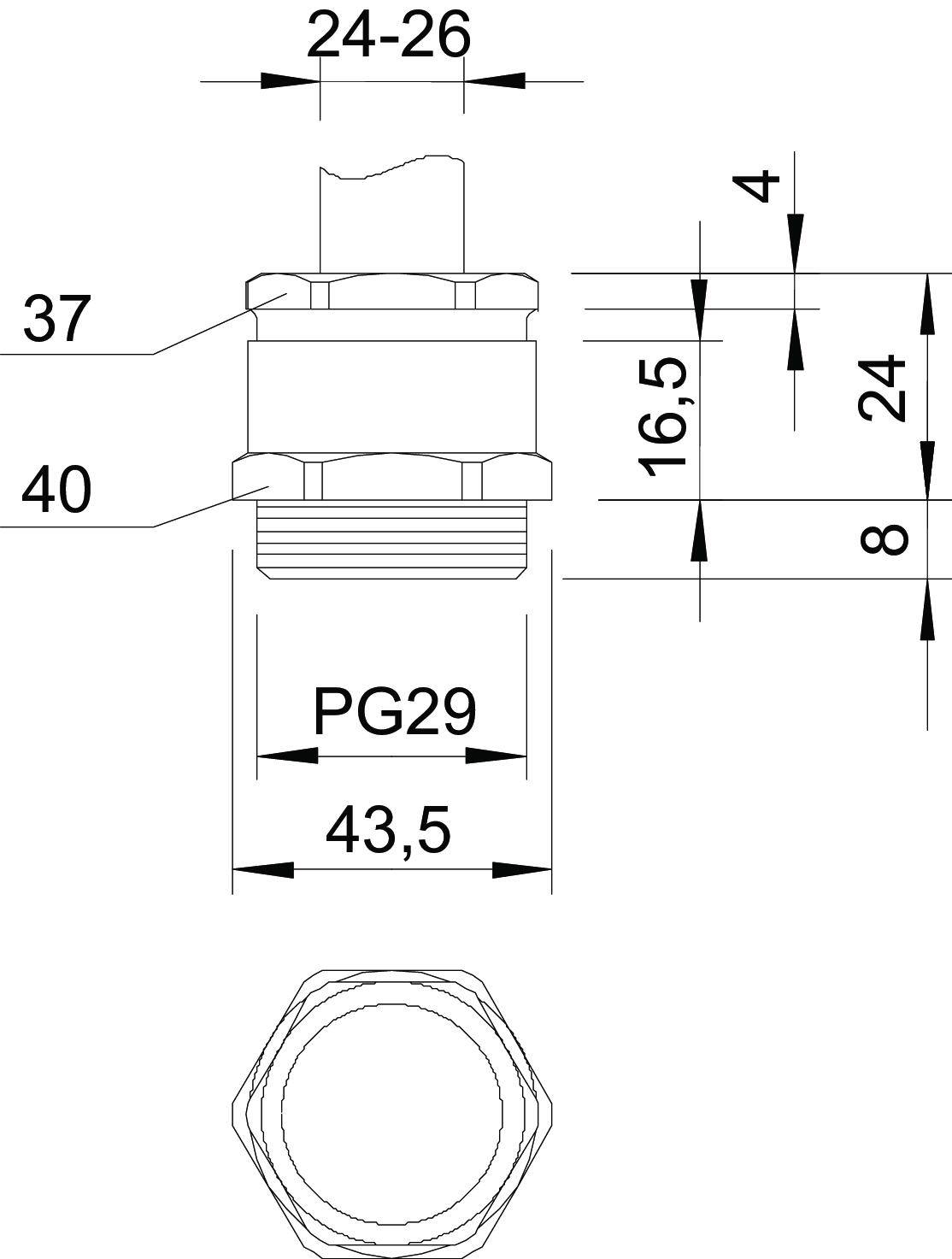 ProductbeschrijvingKabelschroefverbinding met zeskant-tussenstuk, vorm C4 volgens DIN 46320 met Pg-aansluitdraad volgens DIN 40430.