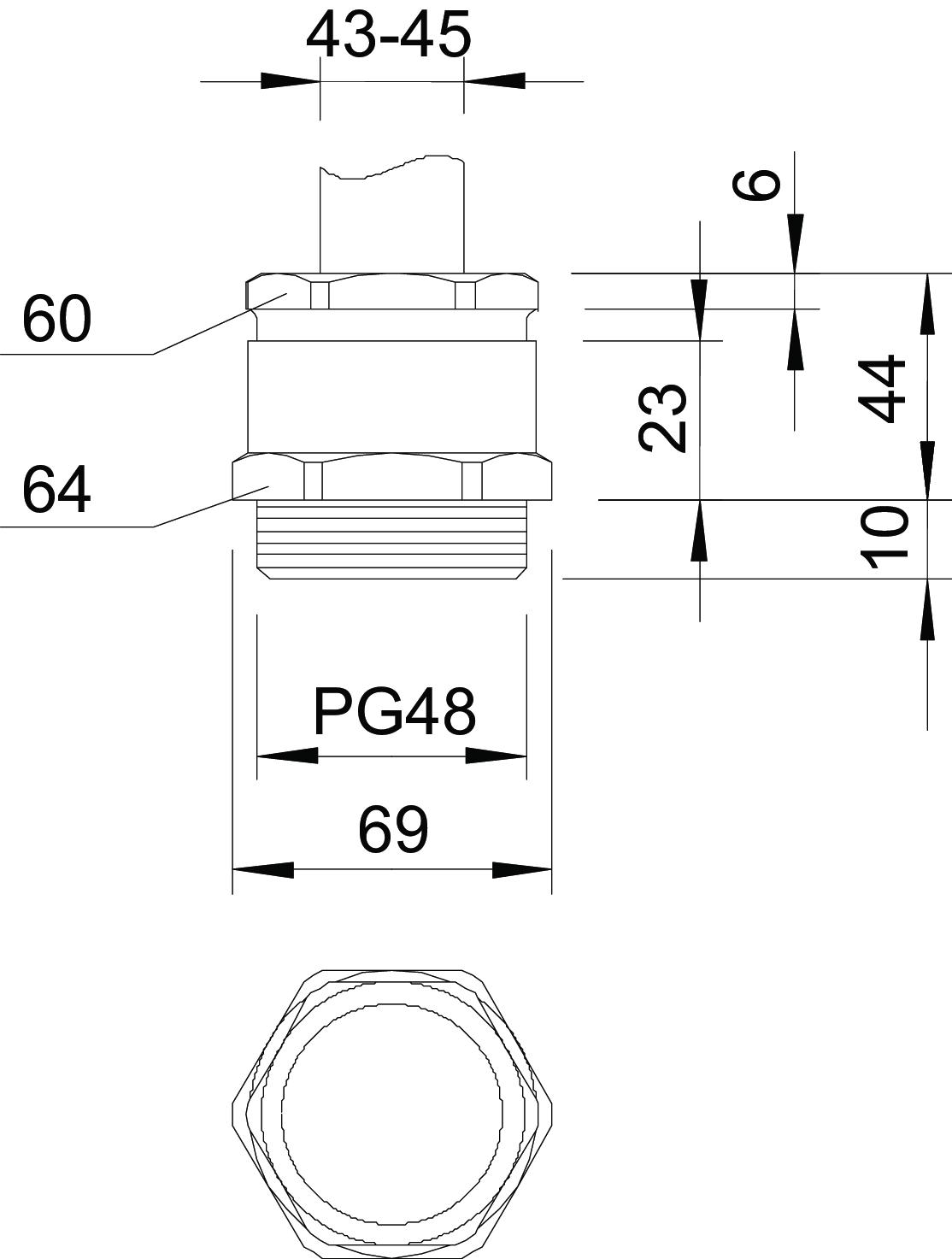 ProductbeschrijvingKabelschroefverbinding met zeskant-tussenstuk, vorm C4 volgens DIN 46320 met Pg-aansluitdraad volgens DIN 40430.