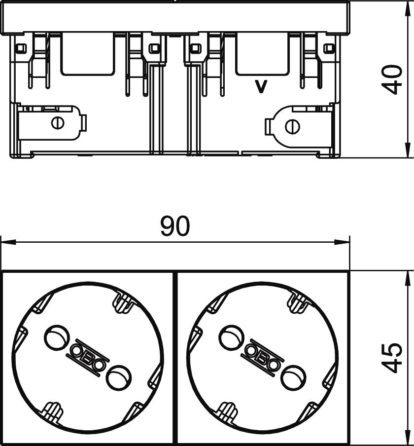 ProductbeschrijvingContactdoos randaarde 2-voudig 33°, met verhoogde bescherming tegen onbedoeld aanraken, met steekklemmen, 2-polig, 16 A, 250 V~, met aansluitklemmen volgens IEC 60884-1.