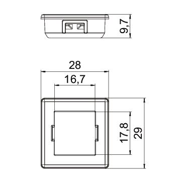 Beschermingsgraad IP20 Breedte 28 mm Diepe 10 mm Dimensie 29x28x10 Draagring nee Halogeenvrij ja Hoogte 29 mm Klapdeksel nee Kleur grafietzwart, RAL 9011 Kroonsteen nee Labelplaatje Zonder tekstveld Materiaal Polycarbonaat Met opdruk nee Met stofbescherming nee Montage-opening Type A Montagetype Overige Samenstelling Overige Toepassing Inbouwbare dataverbinder Transparant nee Trekontlastingsmogelijkheid nee Type bevestiging Vastklikken Uitvoering van de oppervlakken mat - Alle typen