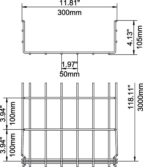 Voor de draadgoot zijn geen extra verbinders nodig, deze wordt eenvoudig in elkaar gestoken. De maasgrootte is 50 x 100 mm.