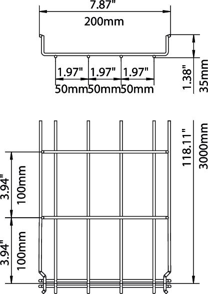 Voor de draadgoot zijn geen extra verbinders nodig, deze wordt eenvoudig in elkaar geklikt. De maasgrootte is 50 x 100 (uitgezonderd GRM 35/50 = 20 x 100 mm).