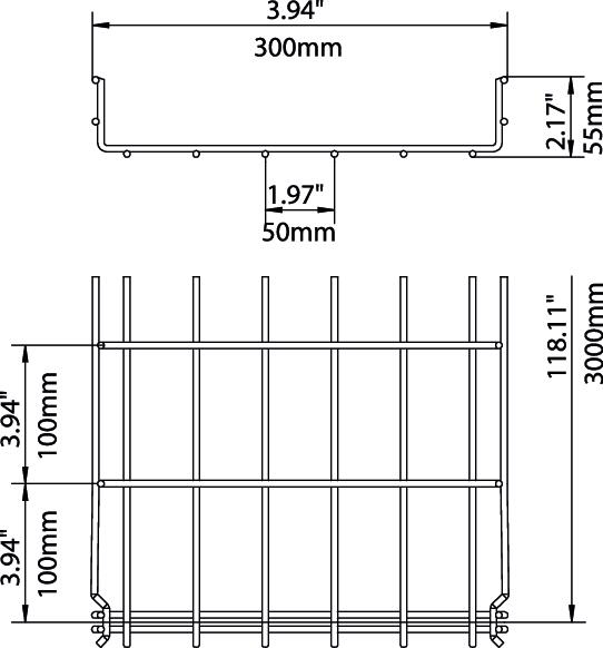 Voor de draadgoot zijn geen extra verbinders nodig, deze wordt eenvoudig in elkaar gestoken. De maasgrootte is 50 x 100 mm (uitgezonderd GRM 55/50 = 20 x 100 mm).