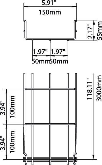 Voor de draadgoot zijn geen extra verbinders nodig, deze wordt eenvoudig in elkaar gestoken. De maasgrootte is 50 x 100 mm (uitgezonderd GRM 55/50 = 20 x 100 mm).