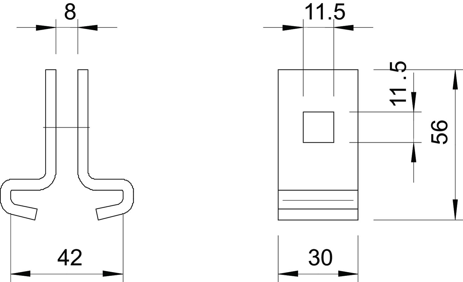 ProductbeschrijvingDraagklauw met platkopbout FRS M10 x 25 voor de montage aan een IS 8-profiel.