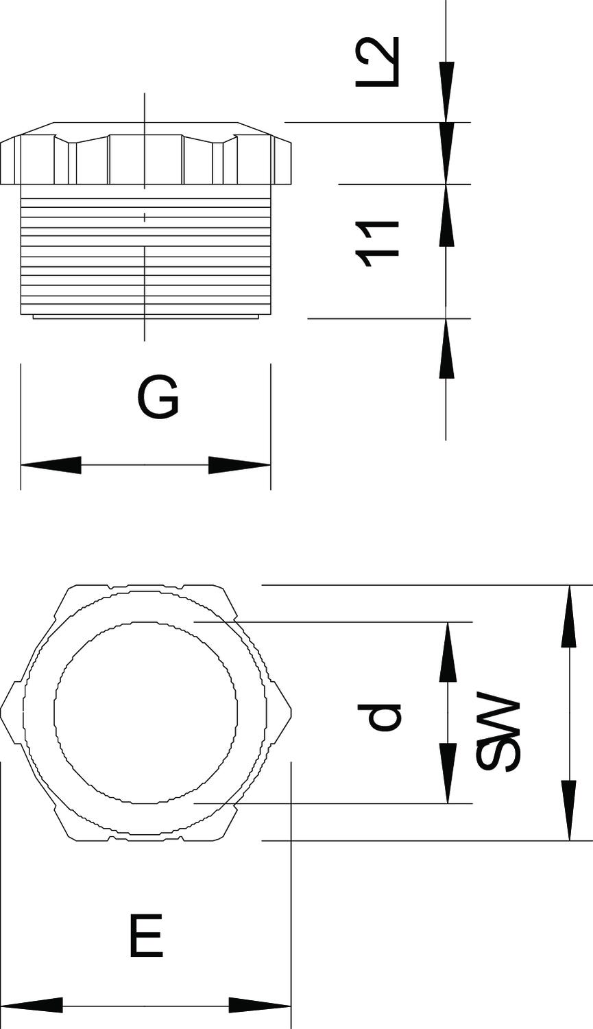 ProductbeschrijvingDrukschroef conform DIN 46320 (deel 1), met PG-schroefdraad conform DIN 40430.