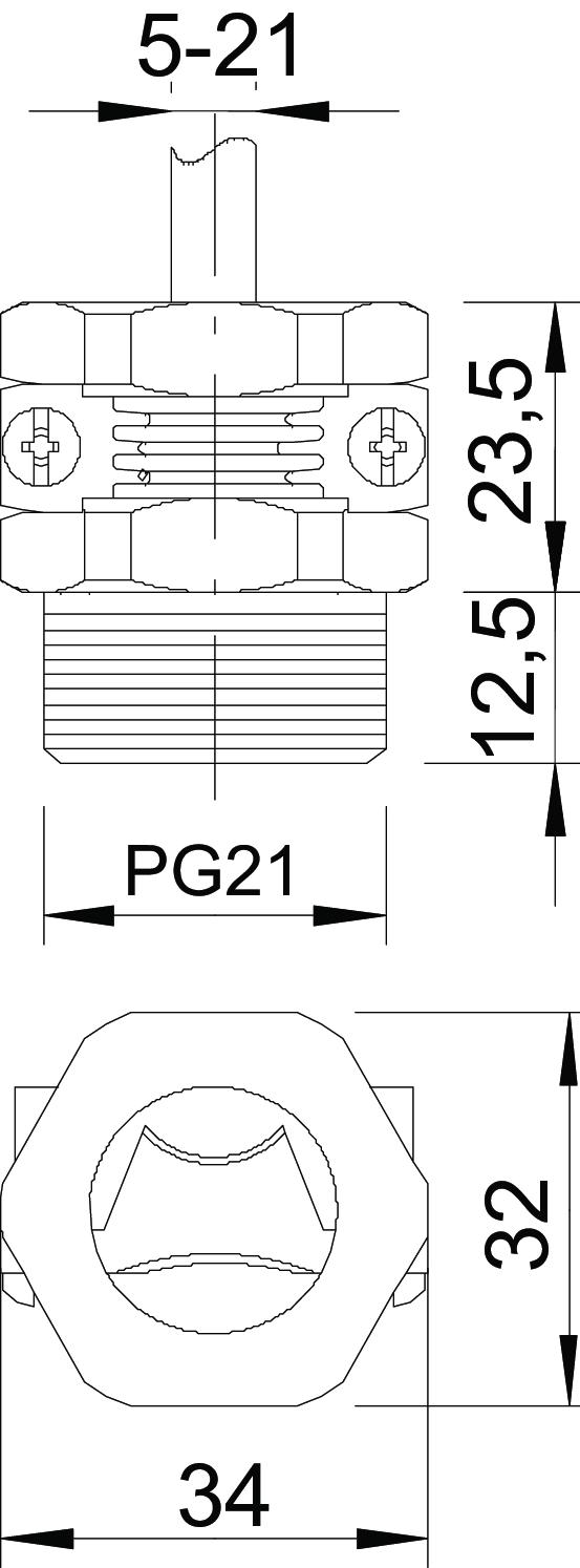 Afmeting e 34 mm CO2-voetafdruk (GWP) van wieg tot poort 0,0729 kg CO2e / 1 Stuk Dimensie PG21 Glasvezelversterkt nee Halogeenvrij ja Klembereik max. 21,2 mm Klembereik min. 5,9 mm Kleur lichtgrijs; RAL 7035 Maat L1 12,5 mm Maat L2 23,5 mm Materiaal Polyamide Nominale schroefdraadmaat 21 Slagvast nee Sleutelwijdte 32 Soort schroefdraad PG Spoed 1,59 mm Trekontlastingsmogelijkheid ja - Alle typen