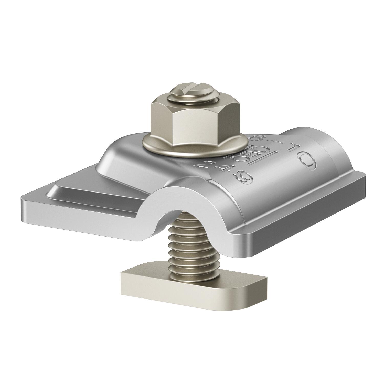 ProductbeschrijvingErdungsklemme zum Einbinden von PV-Montagesystemen in den Potentialausgleich.