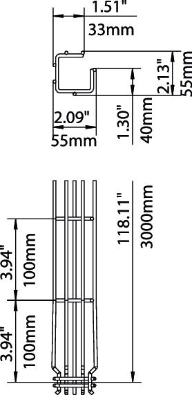 ProductbeschrijvingDraadgoot in G-vorm uit gepuntlaste staaldraden, in verschillende hoogtes en breedtes.