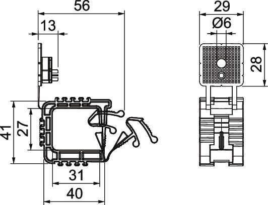 ProductbeschrijvingCollection clamp with pointed fastening element, for the mounting of up to 10 cables NYM 3 x 1.5 m2 on walls or ceilings. Fastening with impact anchor or push-fit anchor. Also suitable for the fastening with gas- and battery-operated firing tools of the brands Bosch, Fischer and Spit (nose diameter Ø 7 mm). Fastening hole: Ø 6 mm. Recommended fastening distance of 250–400 cm when fully assigned, depending on the respective national specifications/norms.