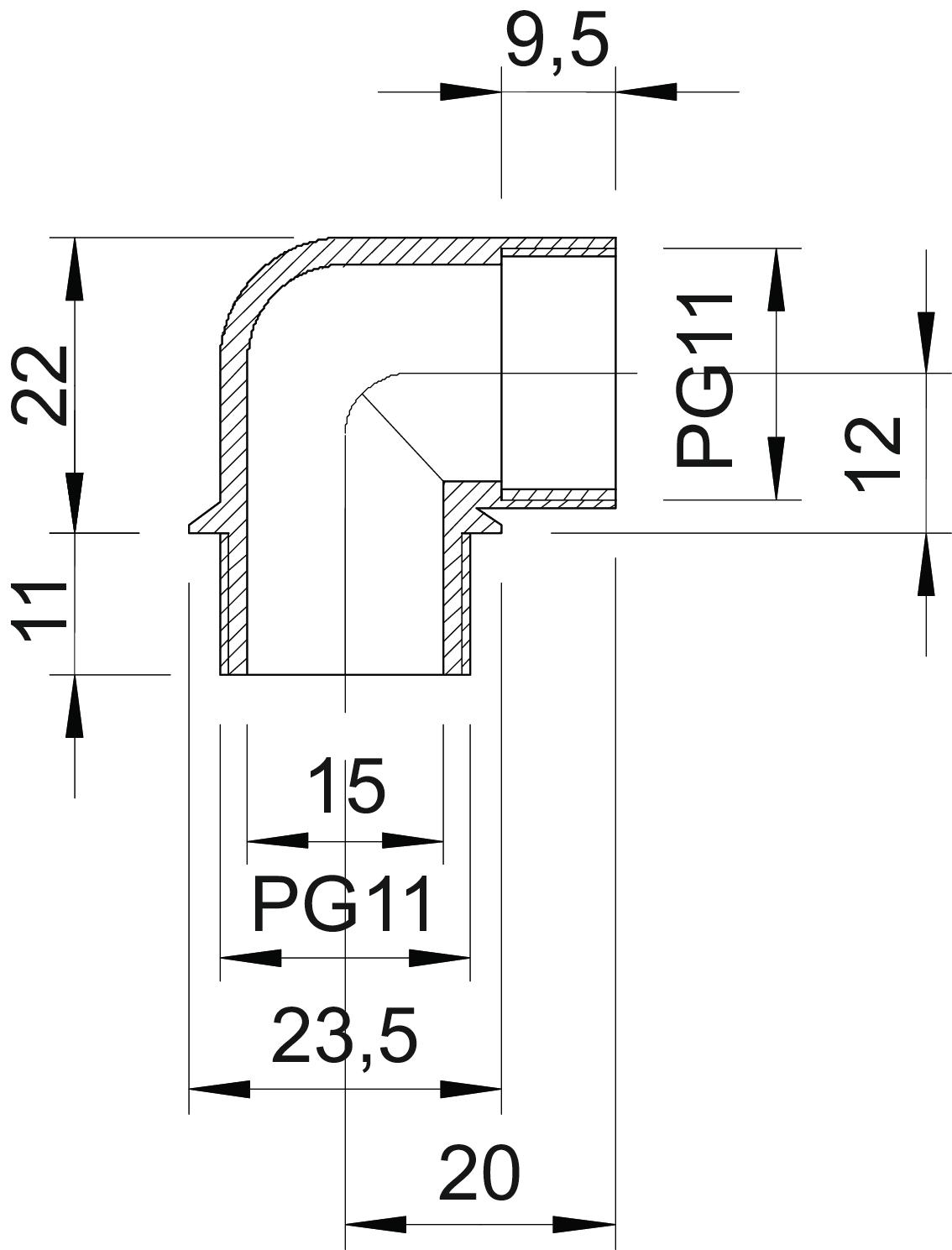 ProductbeschrijvingHaakse aansluitstukken met PG-binnen- en -buitendraad conform DIN 40430.