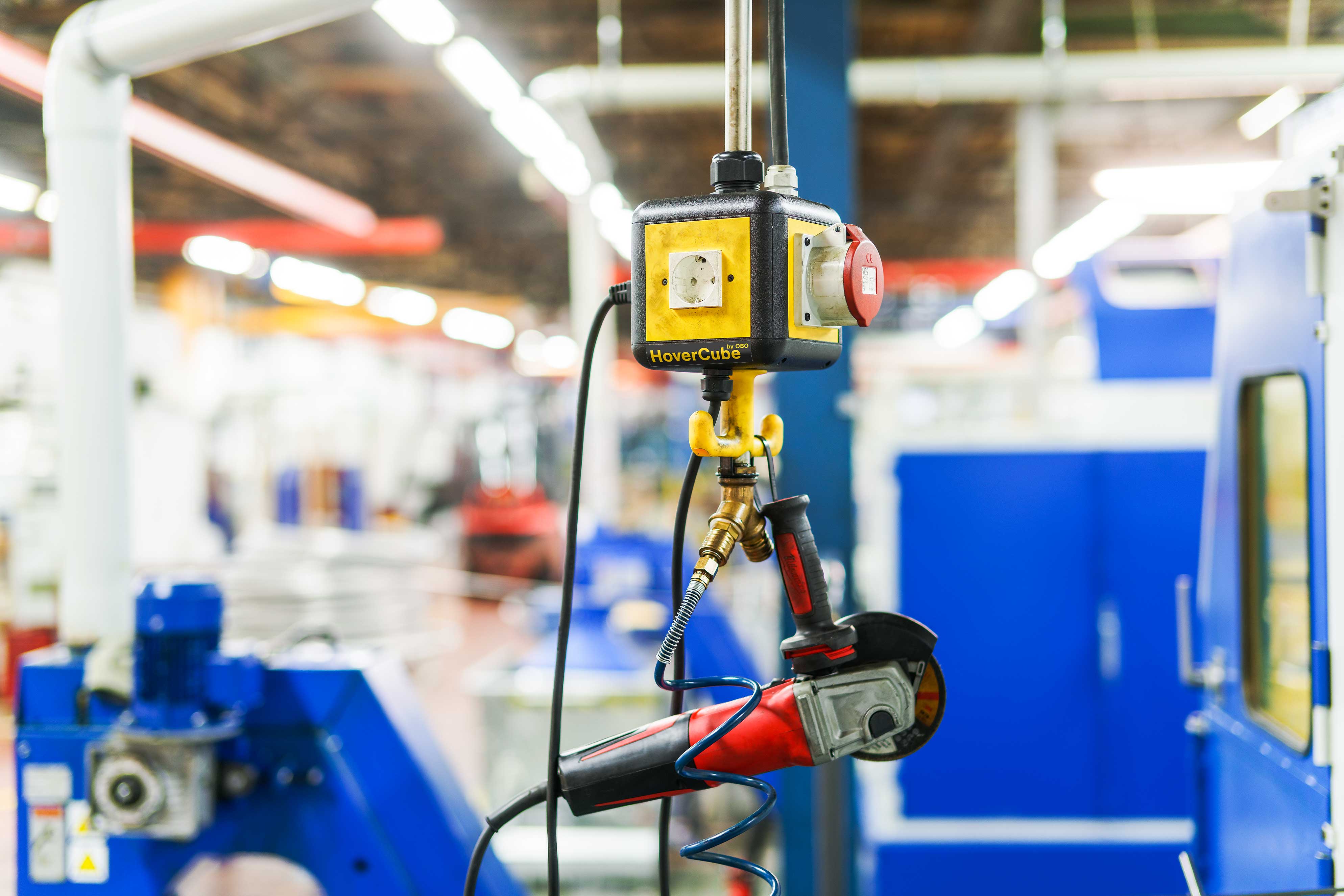 De robuuste behuizing van de HoverCube is gefabriceerd van hoog slagvast polyamide en bied plaats aan vier tot acht installatie-apparaten. De energiekubus brengt noodzakelijke aansluitingen voor arbeidsmiddelen veilig en direct tot op de werkplek. De installatie kan naar keuze vast via een ketting, met een veer of ergonomische met een positioneerapparaat worden uitgevoerd.