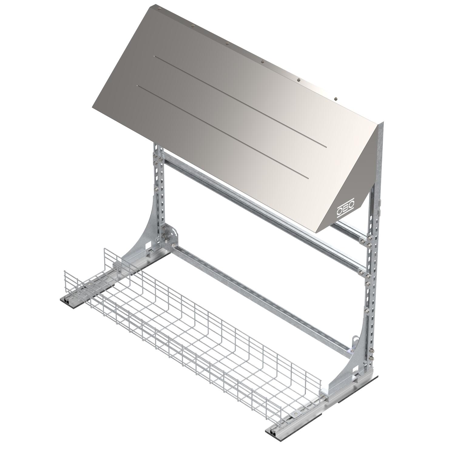 ProductbeschrijvingInverter frame for the protected installation of several inverters for PV systems on flat roofs. Free-standing. Mesh cable tray included for ballasting and for the routing of cables.