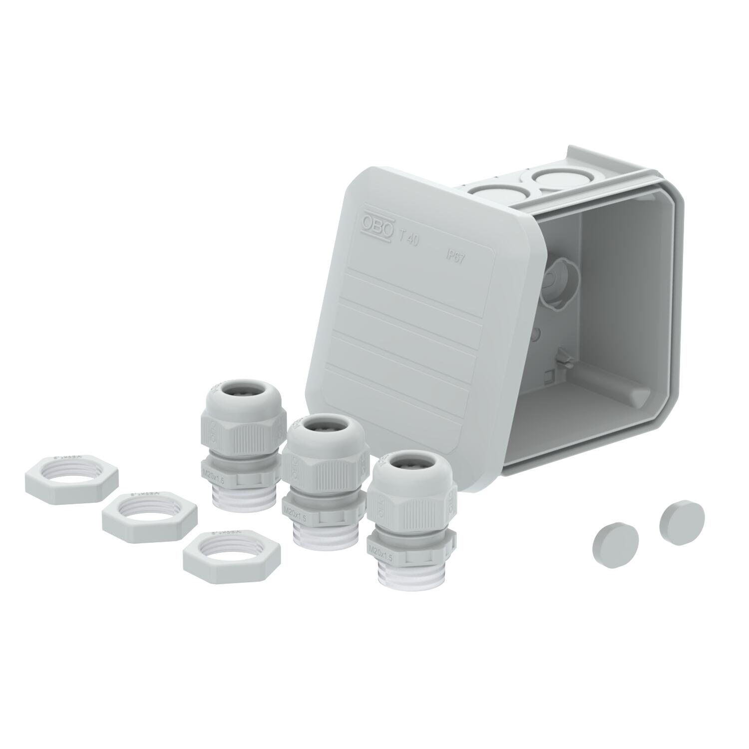 ProductbeschrijvingDe kabeldozen zijn van polypropyleen (een thermoplastisch kunststof) en kabelinvoeren van ethyleenvinylacetaat EVA. Leidingen kunnen direct door de 7 x Ø20 afdichtingen worden geïnstalleerd of de afdichtingen worden met een mes op daarvoor bedoelde plaatsen ingesneden, om een invoeropening voor kabels of buizen te maken. Als alternatief kunnen wartels in plaats van de dichtingen door de openingen worden gestoken en van binnenuit met een borgmoer worden geborgd.