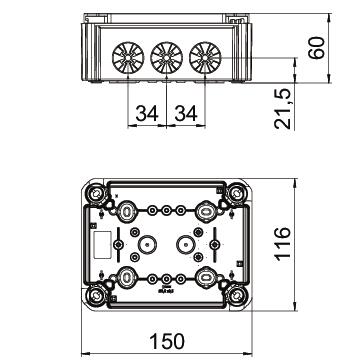 Beschermingsgraad IP 30 Beschermingsgraad IK-code IK07 Breedte 116 mm Deksel niet transparant Dekselbevestiging geschroefd Dimensie 150x116x62 Explosieveilige uitvoering nee Functiebehoud zonder Halogeenvrij ja Hoogte 62 mm Invoer achteraan ja Kleur grafietzwart, RAL 9011 Lengte 150 mm Materiaal Polypropyleen max. Aderdiameter 10 mm² Met afscherming nee Met deksel nee Montagetype Wand-/plafondmontage Nominale isolatiespanning Ui 500 V Rijgbaar ja Soort doorvoer behuizing Voorgeperst gat Soort invoer Kabel/leiding Temperatuurbereik max. 60 °C Temperatuurbereik min. -5 °C Transparante deksel nee Uitrusting zonder Verzegelbaar ja Vlambestendig volgens VDE 0471/DIN 695 deel 2-1, testtemperatuur 650°C voor buisdiameter 16-19 mm Voor Ex-zone zonder voor Ex-zone gas zonder voor Ex-zone stof zonder Vorm Rechthoekig Weersbestendig nee - Alle typen