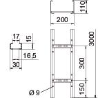 ProductbeschrijvingKabelladder met geperforeerde zijkant, zijhoogte 110 mm, met vastgeklonken, naar boven toe geopende C-profielsporten.