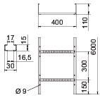 ProductbeschrijvingKabelladder met geperforeerde zijkant, zijhoogte 110 mm, met vastgeklonken, naar boven toe geopende C-profielsporten.