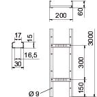 ProductbeschrijvingKabelladder met geperforeerde zijwanden, zijhoogte 60 mm, met vastgeklonken, naar boven toe geopende C-profielsporten (uitvoering VS).