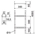 ProductbeschrijvingKabelladder met geperforeerde zijwanden, zijhoogte 60 mm, met vastgeklonken, naar boven toe geopende C-profielsporten (uitvoering VS).
