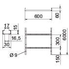 ProductbeschrijvingKabelladder met geperforeerde zijkant, met een zijhoogte van 60 mm en met vastgeklonken, naar boven toe geopende C-profielsporten (uitvoering VS).