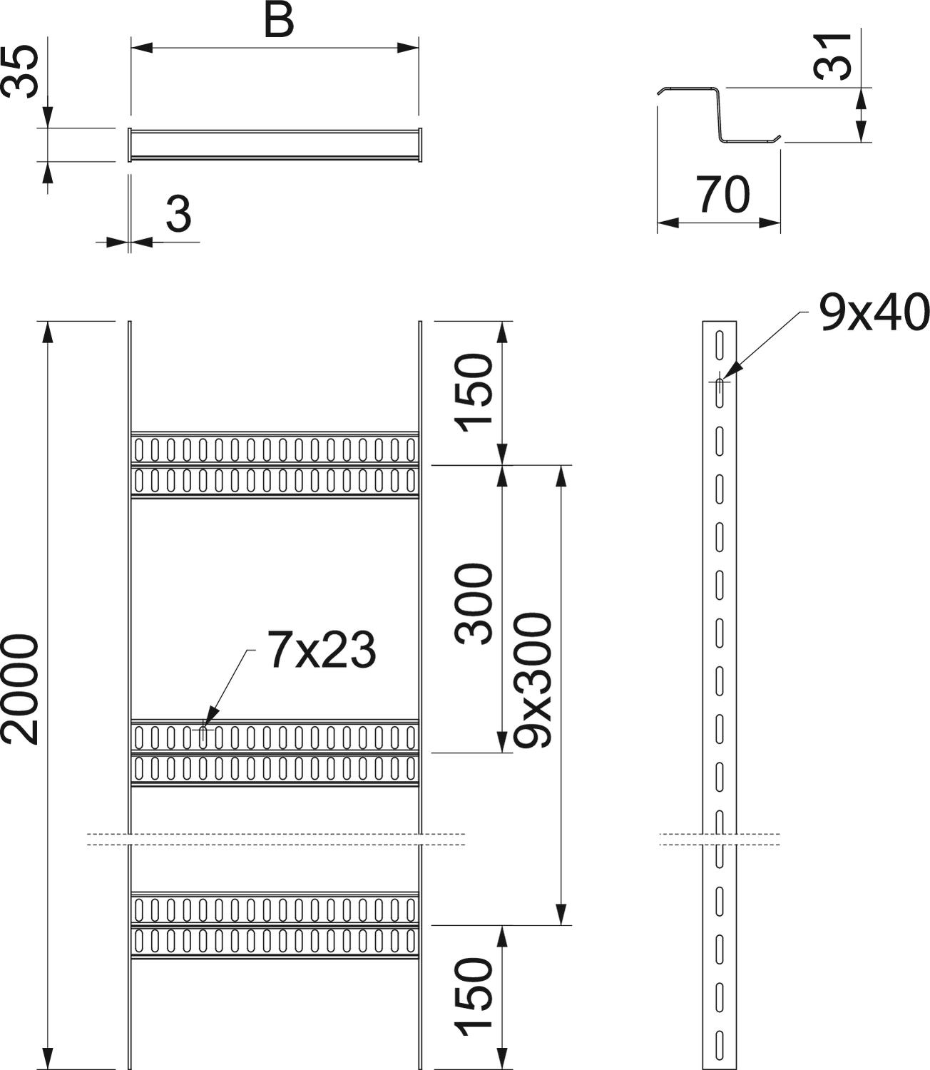 ProductbeschrijvingScheepskabelladder in lichte uitvoering met geperforeerde langsligger, zijhoogte 35 mm met vastgelaste, geperforeerde Z-sporten. Belasting beproefd conform IEC in combinatie met de verbinder type SLV.