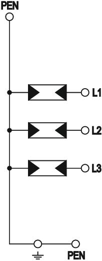 ProductbeschrijvingCombi-afleider type 1+2 voor montage op 40 mm verzamelrail, voor TN-C-systemen