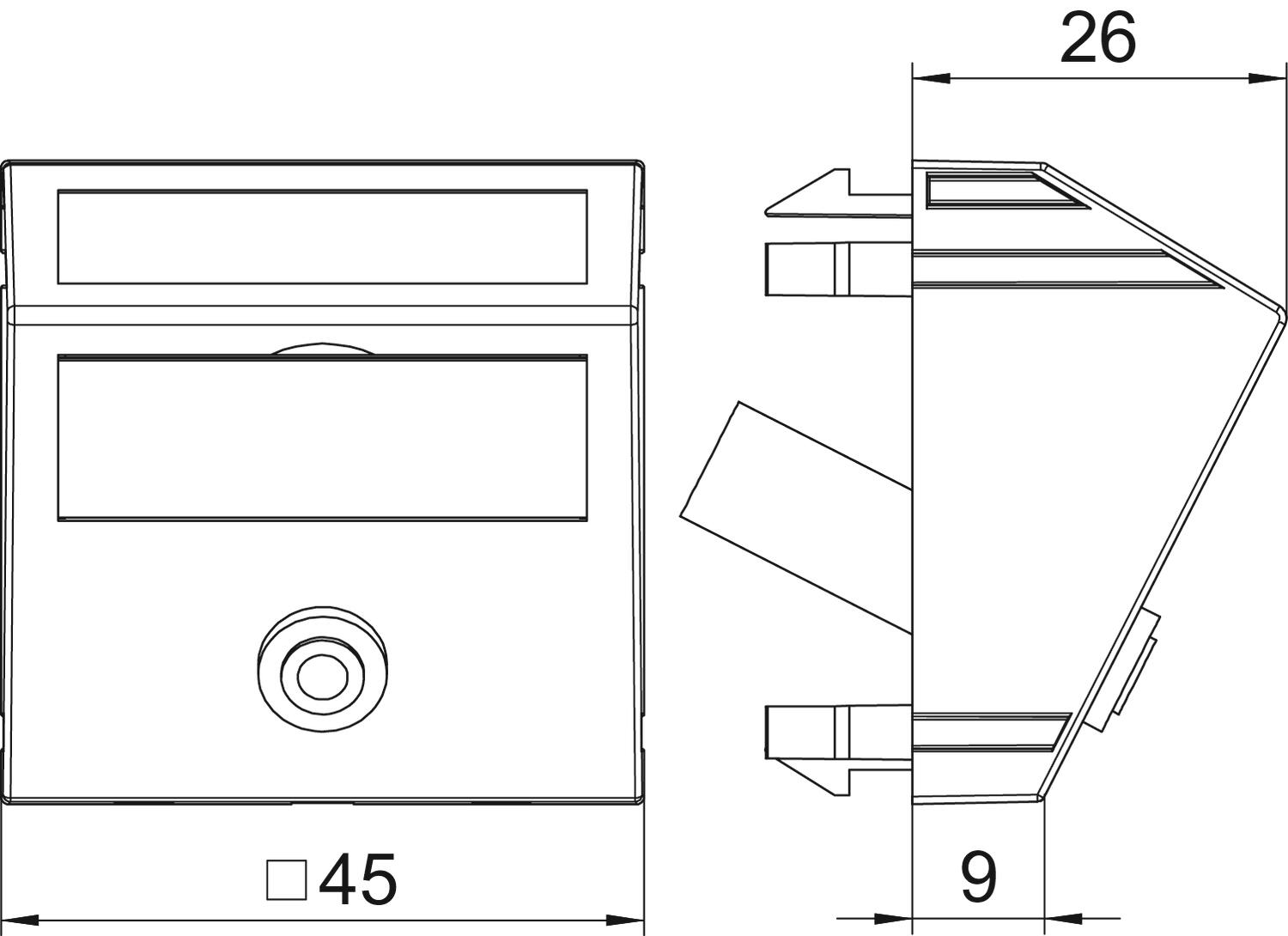 ProductbeschrijvingMultimediadrager met een mini-klink aansluitbus, schuine kabeluitlaat, met tekstveld, mini-klink bus (TRS 3,5 mm) met soldeeraansluiting. Dragerplaat met klikbevestiging, geschikt voor horizontale en verticale inbouw in de systeemomgeving.